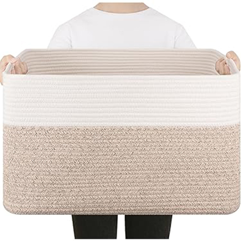 גדול מודרני ארוג אחסון כותנה מודרני גדול עם ידית חבל בז 'ידית חבל