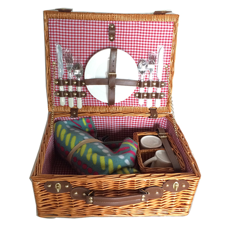 2-Person dokuma söğüt hasır piknik sepeti kilit astar battaniye ve sofra mutfak ve oturma odası kullanımı için kamp için
